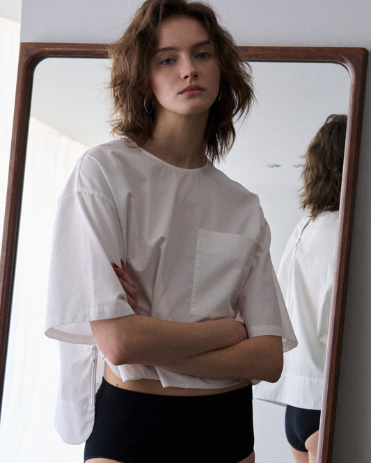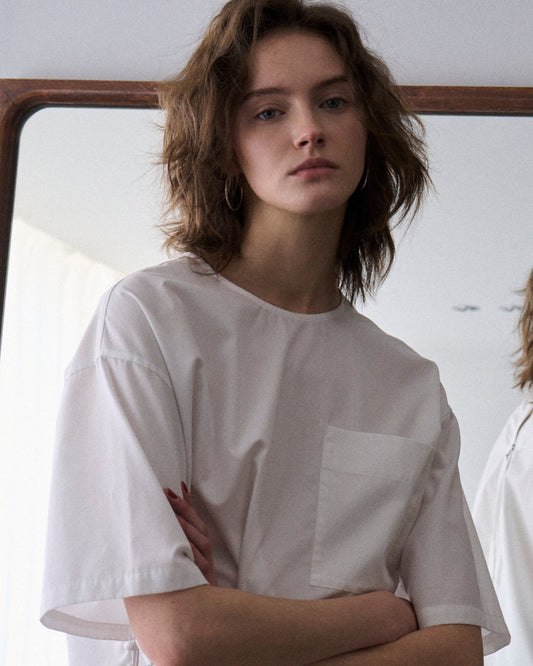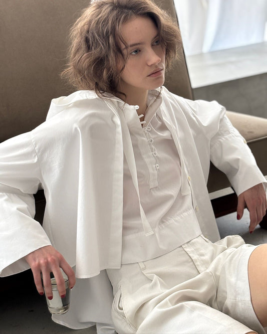 ファーストコレクションでは、私たちが長年の服作りの中でたどり着いた“白のシャツとデニム” にフォーカスし、ブラウスとシャツのミニマルなラインナップで展開。日々の暮らしの中から生まれる感覚や視点を大切にし、シンプルでありながら特別な一枚を提案します。