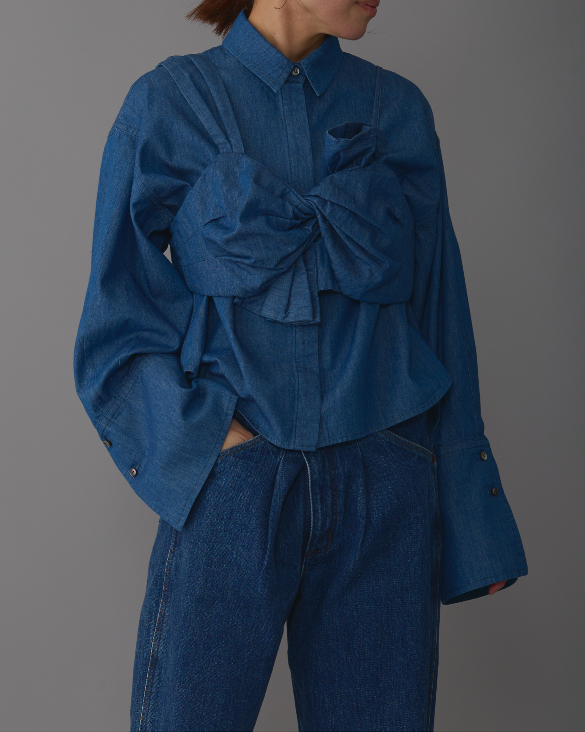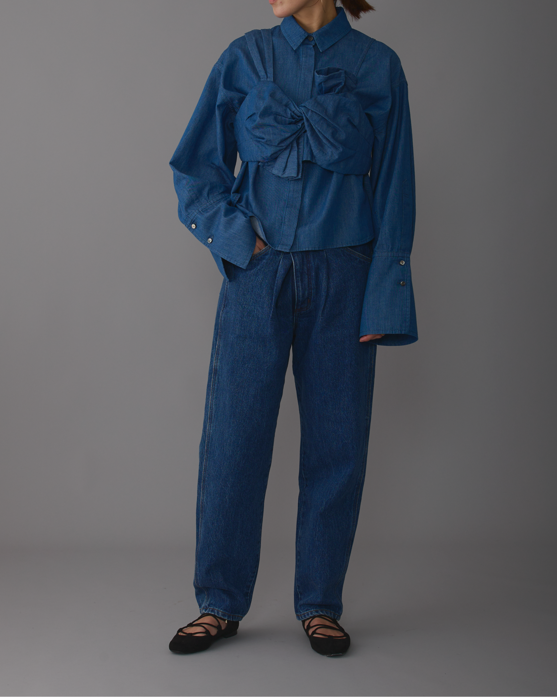 *糸本数を多めにしっかりと織り上げた生地ながら、柔らかで膨らみのあるデニム生地。他の物との洗濯は避けてください。