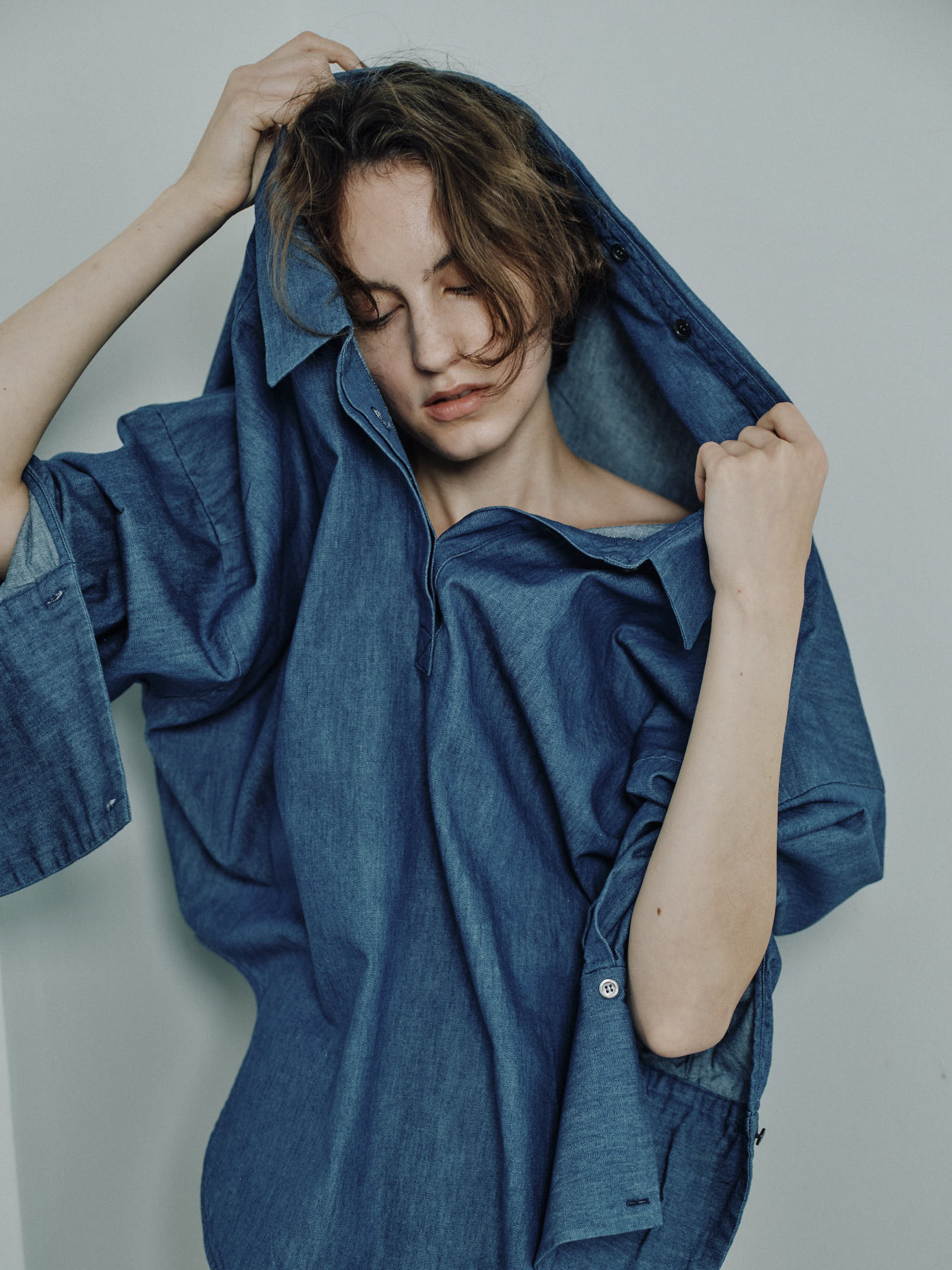 *糸本数を多めにしっかりと織り上げた生地ながら、柔らかで膨らみのあるデニム生地。他の物との洗濯は避けてください。