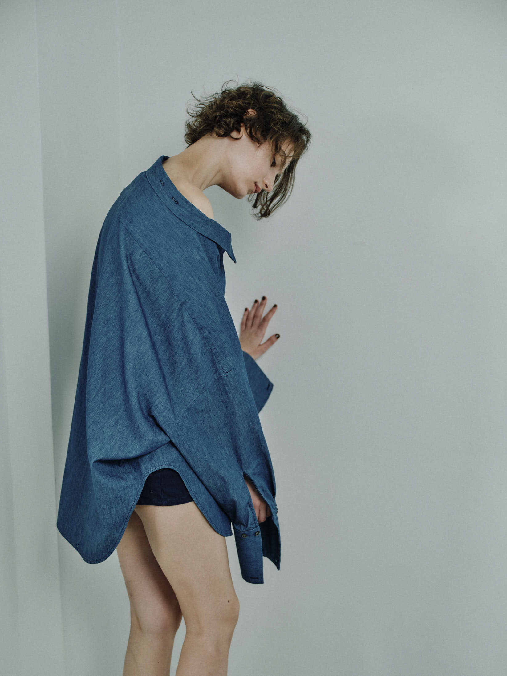後ろ襟のボタンで複数の着こなしが可能なシャツ