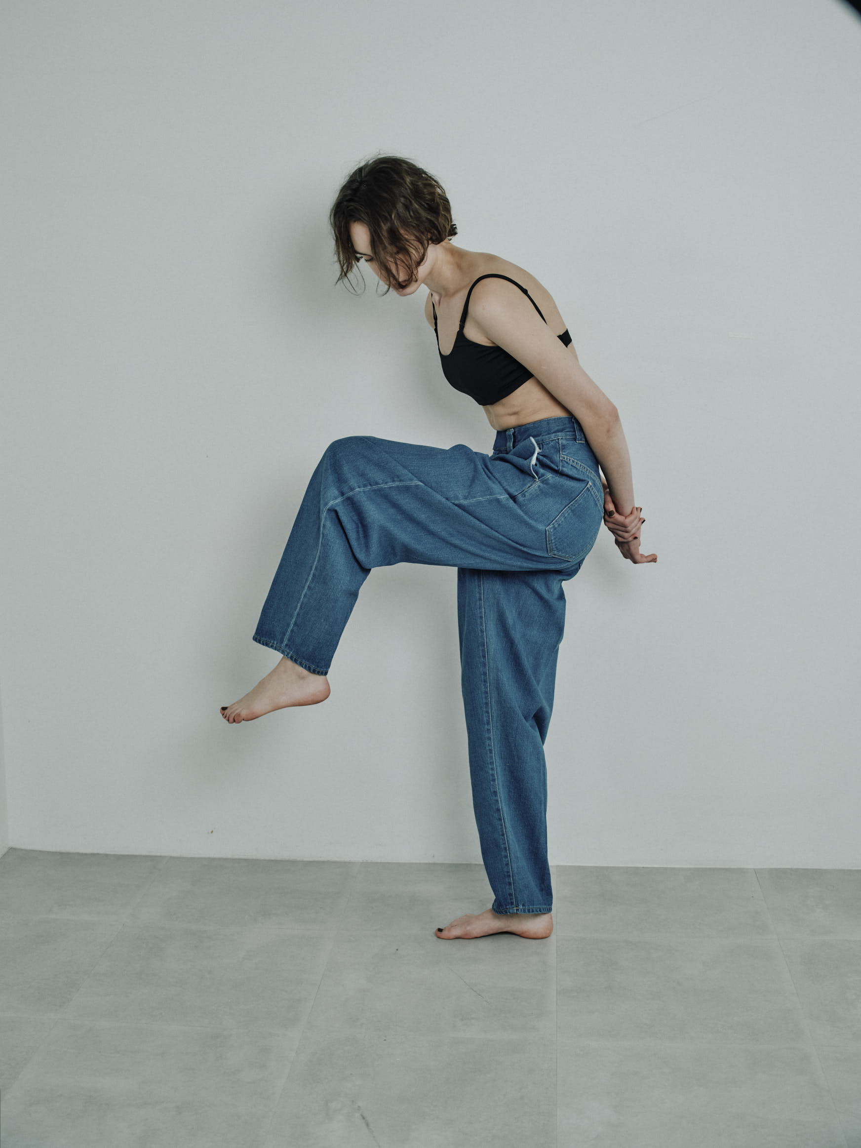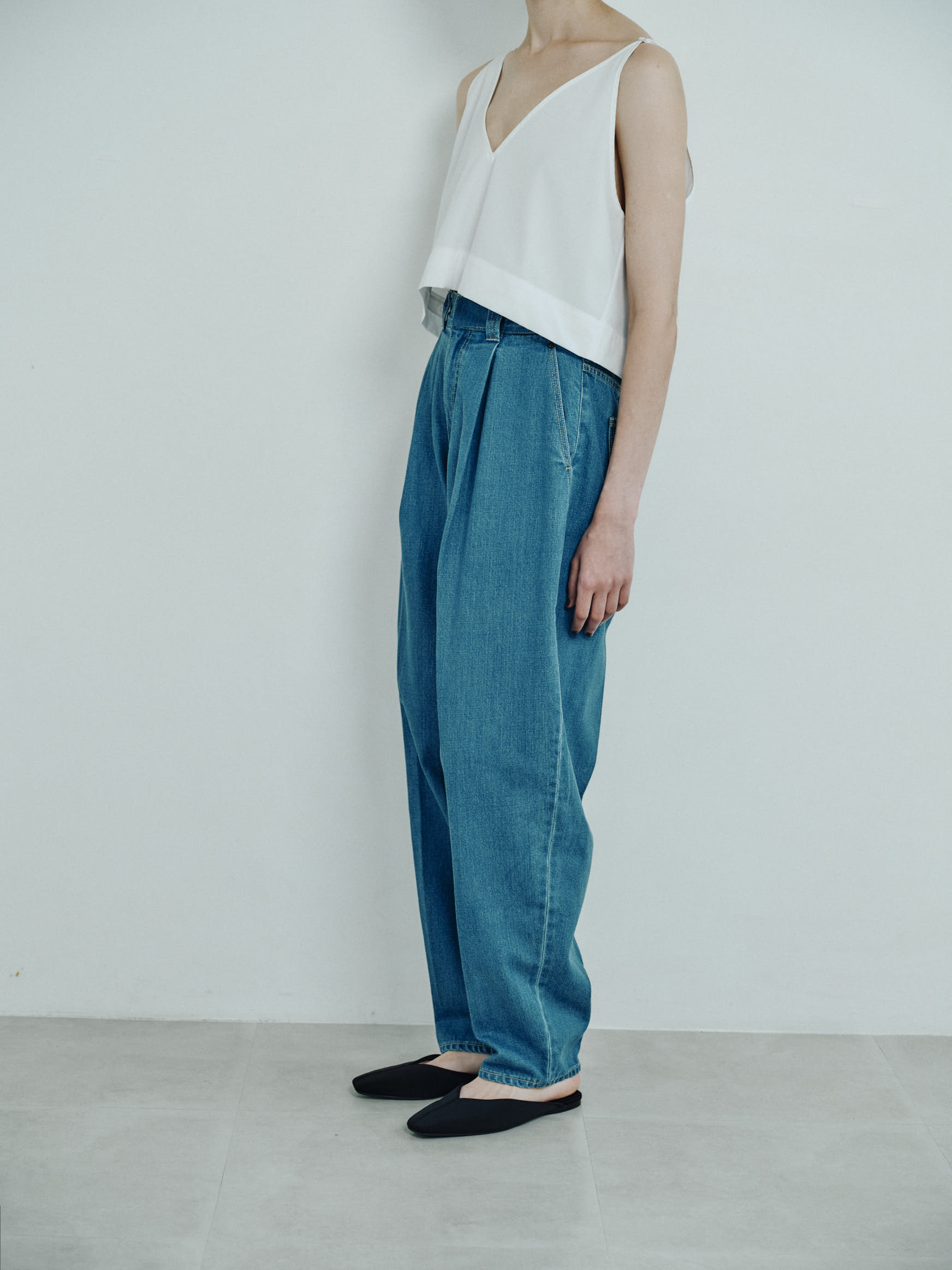 tuck curve loose fitting jeans