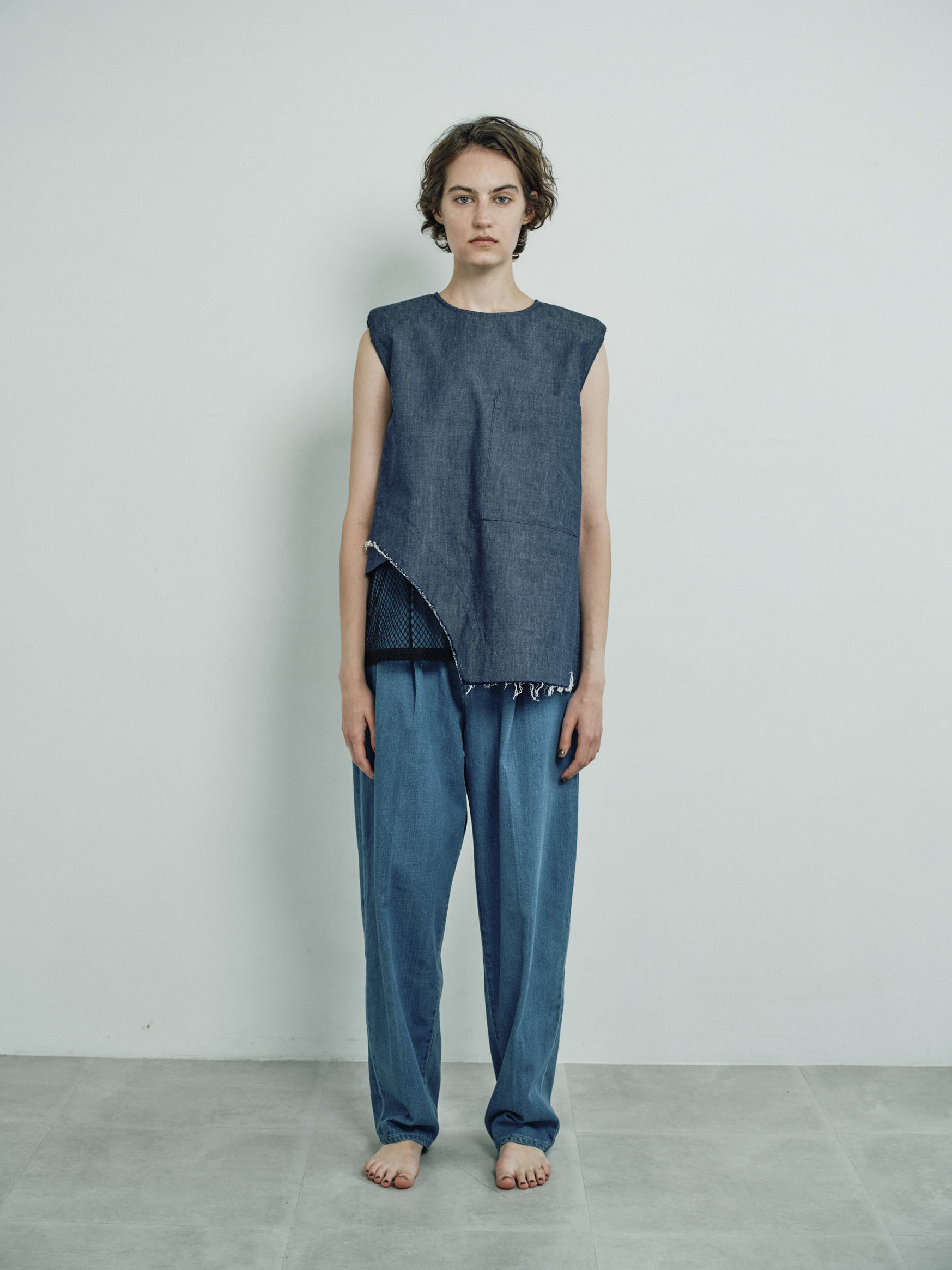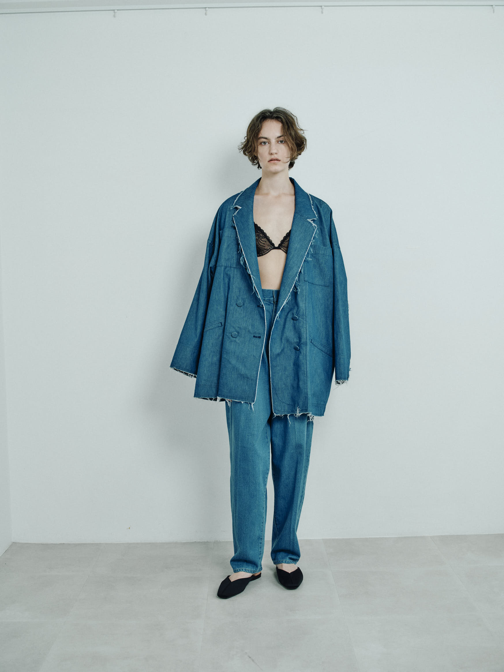 *ミディアムウエイトの程よい厚みで、柔らかめのデニム生地。他の物との洗濯は避けてください。