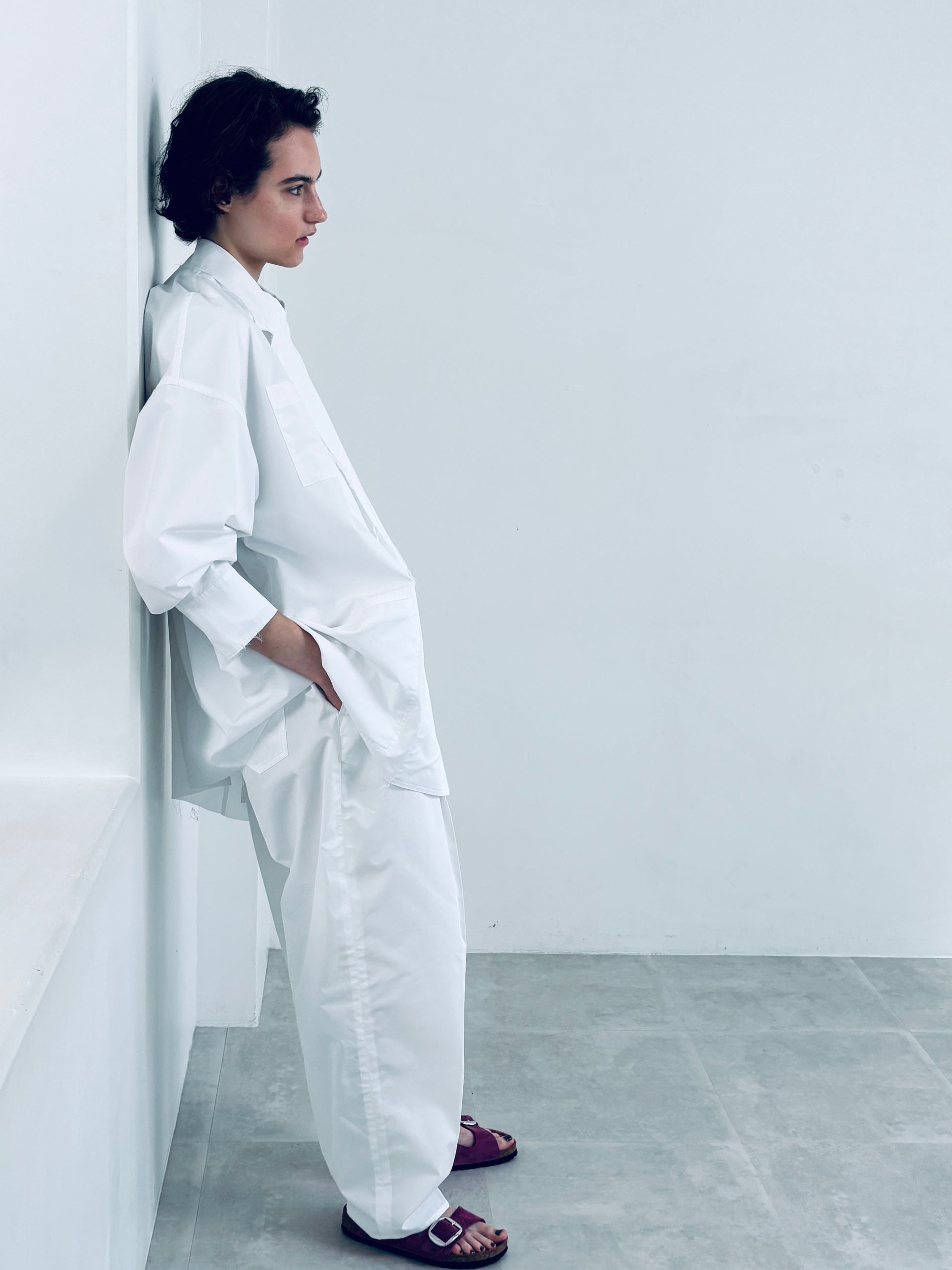 ボリュームあるゆったりとしたシルエットのスラックスパンツ